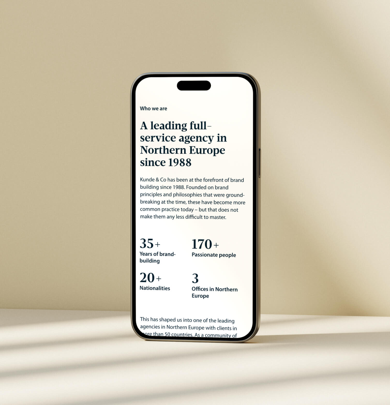 Kunde & Co – et af Danmarks største reklamebureauer med afdelinger i Schweiz og Tyskland – havde brug for en digital makeover. Deres website skulle ikke bare have et nyt design, det skulle gentænkes fra bunden for at matche deres ambitioner og ekspertise. Valget faldt på Checkmate, og sammen skabte vi en platform, hvor brugervenlighed både er for de besøgende, men også content creators, som opdaterer sitet med events, cases, news og meget meget. Time-to-market er bare møgvigtigt, ik’?